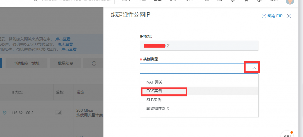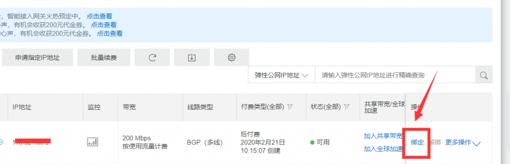 第三步,弹性公网ip和服务器做绑定,步骤如下