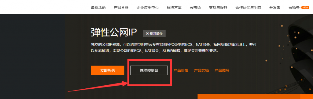 b.也可以。打开链接https://www.aliyun.com/product/eip?spm=5176.10695662.1112723.2.2ed44e751ACFOG&aly_as=2fQokxn2 点击下面的控制台